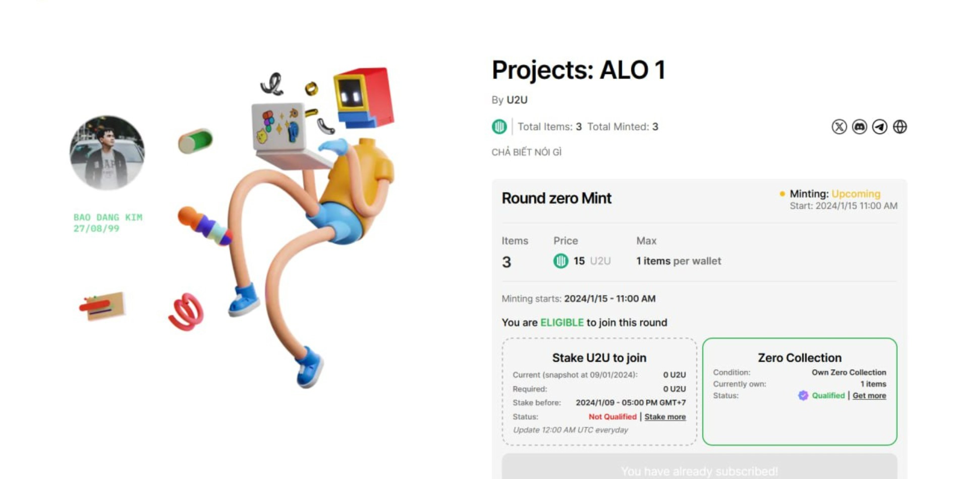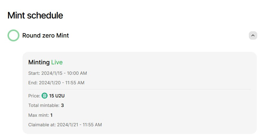 * Round Zero : Users are required to either stake a certain amount of U2U or own an NFT from the Zero Collection.